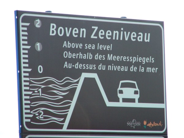 Hay mucho carteles que recuerdan que estás en los Pasises Bajos, siempre por debajo del nivel del mar.