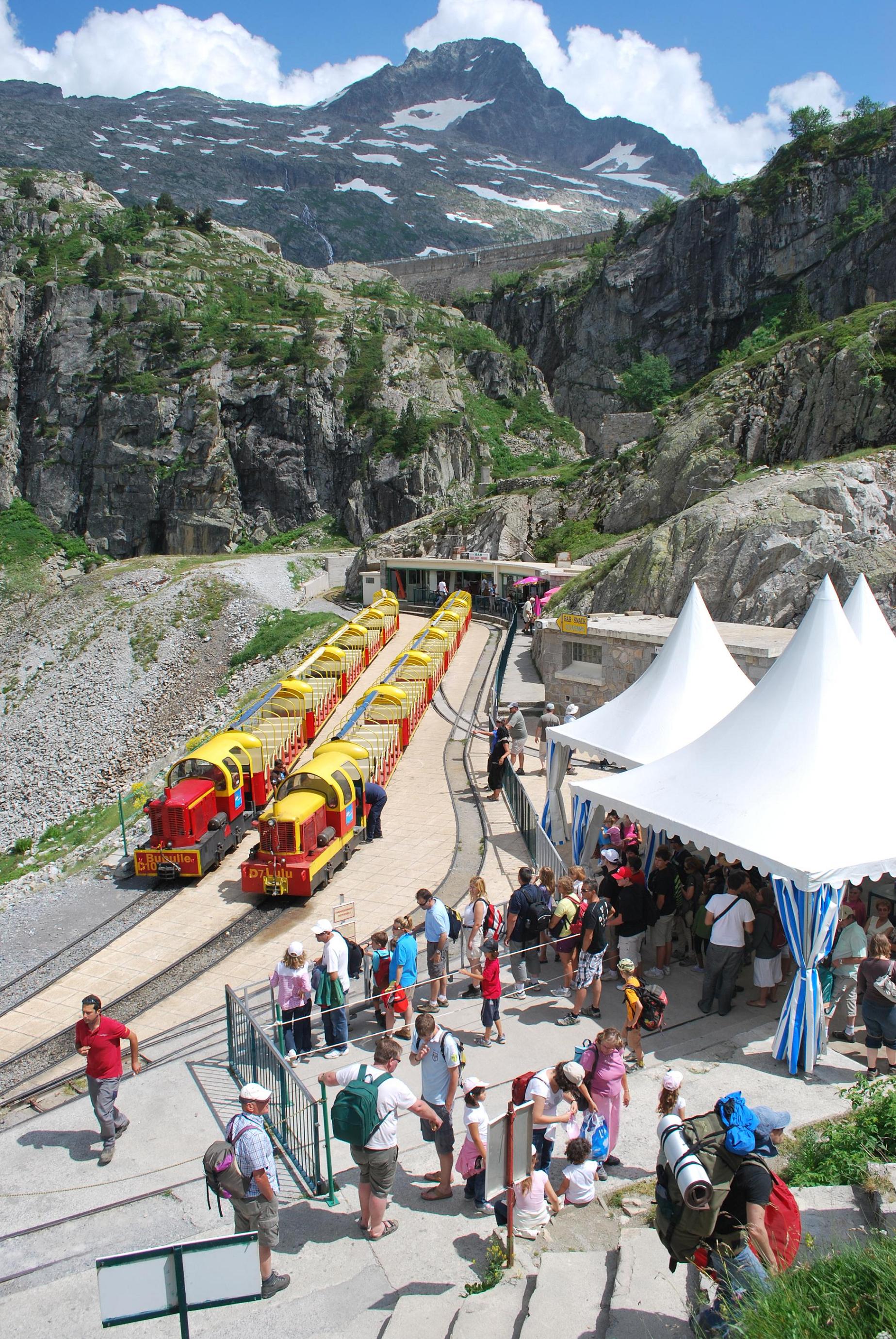 Al llegar al final del recorrido se disponen de 1 hora y 20 minutos para hacer un recorrido por la presa y sus alrededores ( 15 minutos de recorrido hasta la presa ). Se puede contemplar las cristalinas aguas de la presa producto del deshielo. En el billete se observa inscrita la hora de regreso ( acorde a la de la ida ). Hay cafeterías-restaurantes en ambas estaciones.