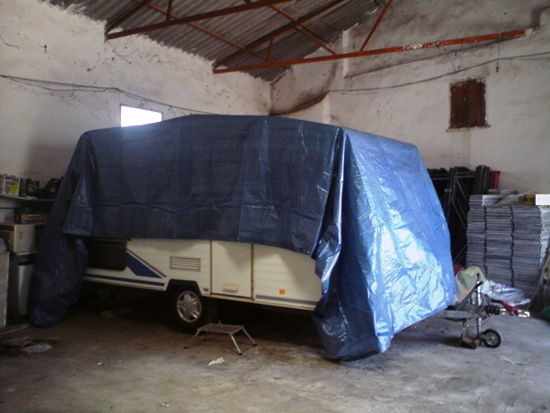 Montamos el toldo y todo bien hasta la noche, que los tres primeros dias habia un aire de 100 km/h. Despues de la primera noche compre dos hierros mas para el armazon del toldo por si las moscas.
