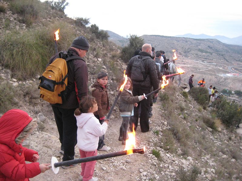 Nuestro gran amigo Antonio ( PAPERO ) nos insistio para que pudieramos contemplar lo que ocurre por la tarde de la vispera del Dia de Reyes Magos en su localidad natal. Es costumbre esa unica vez en el año la de subir a un monte de Elda sobre las 15 horas sus vecinos y descender sobre las 18 horas, pero alumbrandose de antorchas.